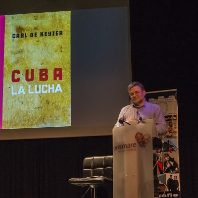 CARL de KEYZER was afgelopen te gast in Roombeek (Enschede).Stichting FRAMED organiseerde afgelopen zaterdag de lezing van Carl de Keyzer met en over zijn werk. Een goed gevulde zaal en een fotograaf die ondanks zijn Magnum lidmaatschap eigenlijk nog steeds een liefhebber in hart en nieren is. Gedreven, humorvol en met zijn Belgische tongval wist hij de aanwezigen drie uur lang te boeien; van begin tot eind. Al zijn werk passeerde in vogelvlucht maar nooit gehaast en van alle episodes in het tijdperk de Keijzer kregen we ruimschoots beeld te zien. Ik had het niet willen missen. Aan het eind nog een prachtig boek gescoord waarin hij een beeld geeft van onze wereld nadat de zeespiegel dusdanig gestegen is dat slechts leven hoog in de bergen mogelijk is. Hopelijk blijft dit futuristisch spookbeeld de mensheid bespaard. De Keyzers enigszins ironische toon mag ons extra tot denken zetten en met meer ontzag naar de wereld kijken en zorgvuldiger om laten gaan met ons milieu. Laat Higher Ground niet echt de toekomst van onze kinderen en kleinkinderen worden.
